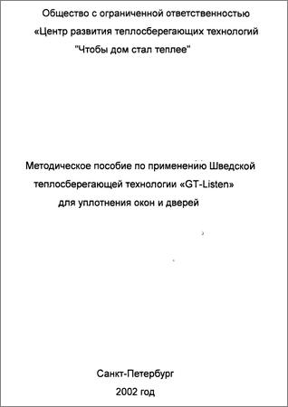 Методическое пособие по применению Шведской теплосберегающей технологии «GT-Listen» для уплотнения окон и дверей
