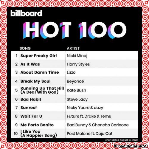 Название: Billboard Hot 100 Singles Chart [27.08] Жанр: Pop, Dance, Rock, Hip-Hop, R&B, Country